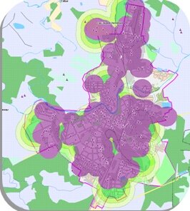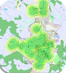 На примере пилотной зоны построим картограмму интегрального уровня привлекательности локальных территорий города.