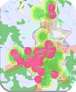 Этап предполагает выделение зон транспортной и пешеходной доступности до индикаторов массовости: